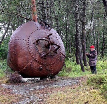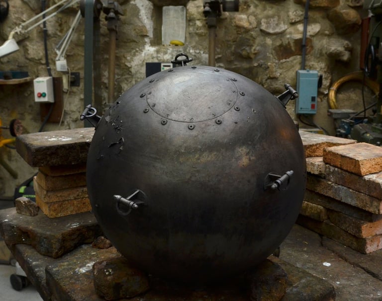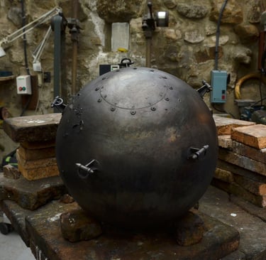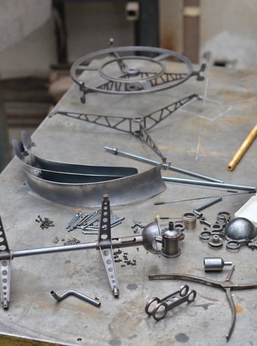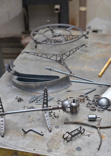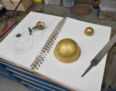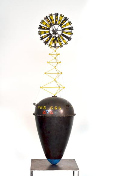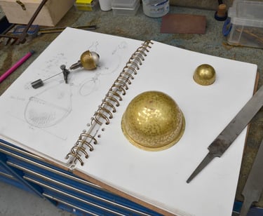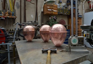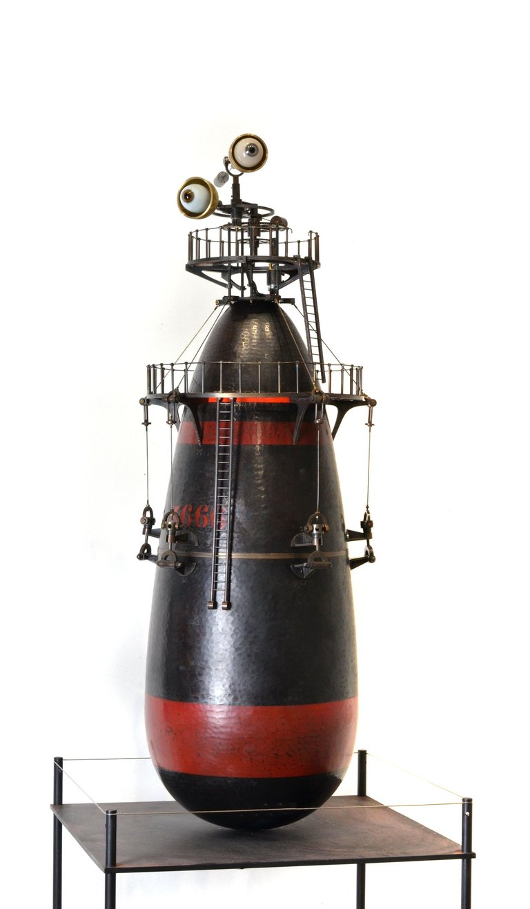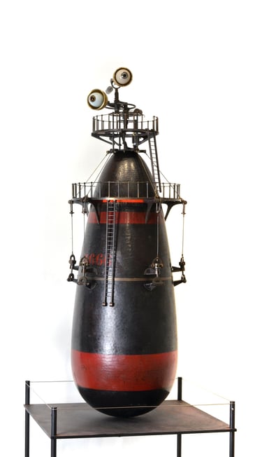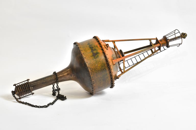 Érythrée Maquette de balise réalisée d'après le dessin du carnet de voyage Érythrée de Benjamin Flao. Cuivre mis en forme au marteau, accastillage et structure en laiton en laiton 110mm.