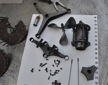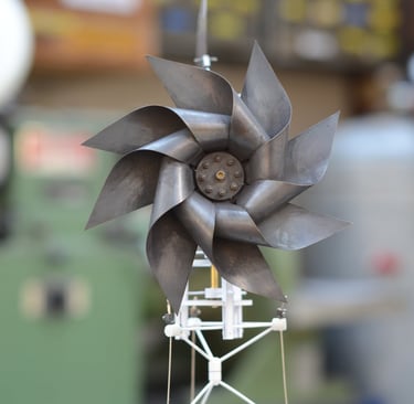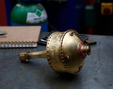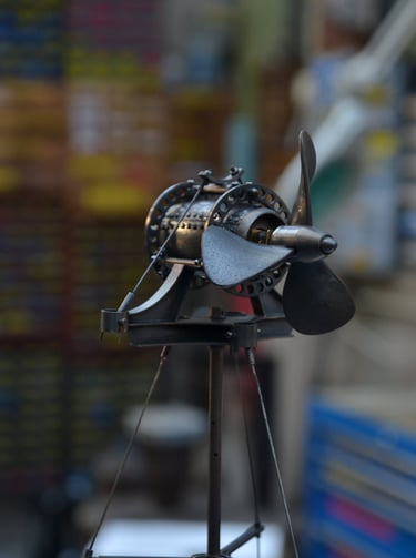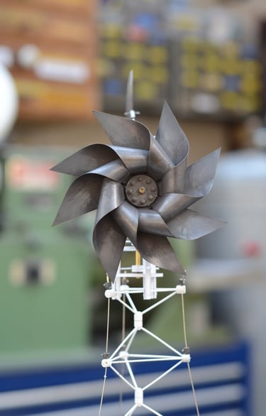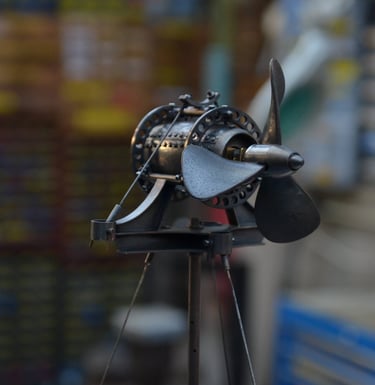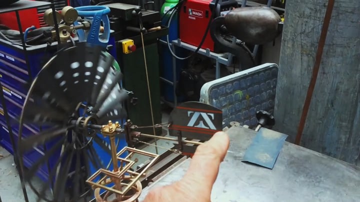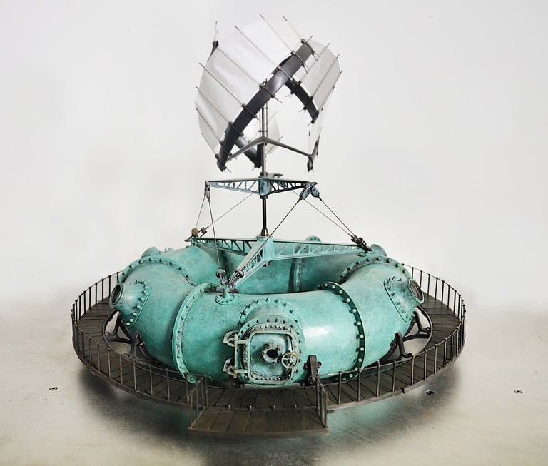 Bouéephare Automate, cuivre mis en forme et patiné, structure laiton, hélice motorisée, hauteur 80cm