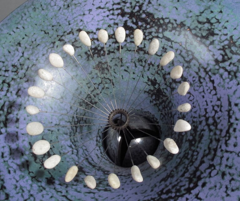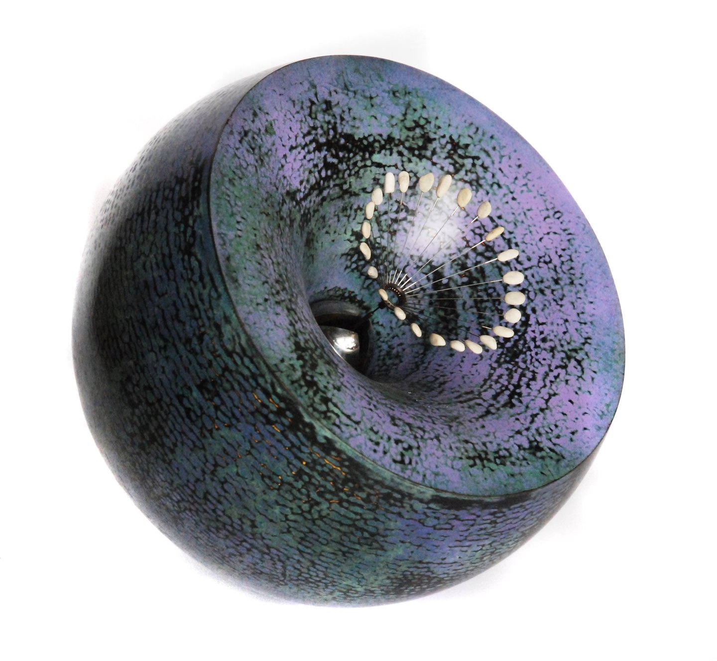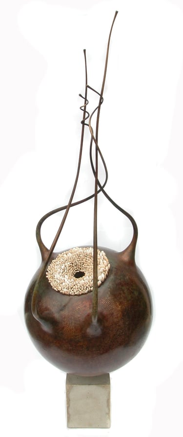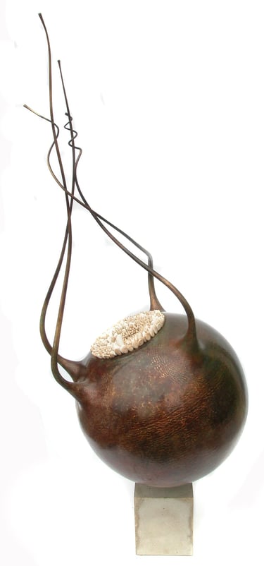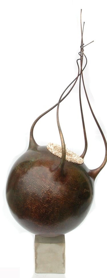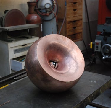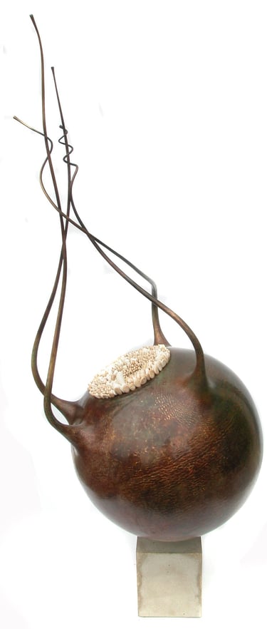 Bouche d'agnathe Cuivre mis en forme au marteau, patiné, 700 galets, hauteur 90cm, , 2006.