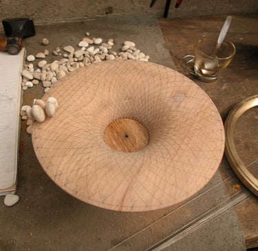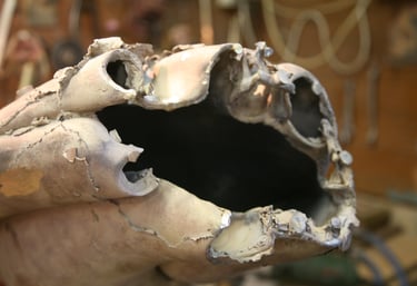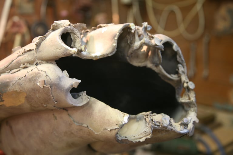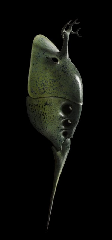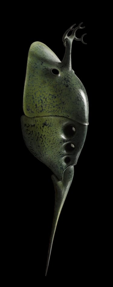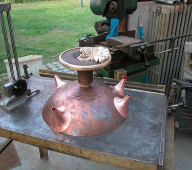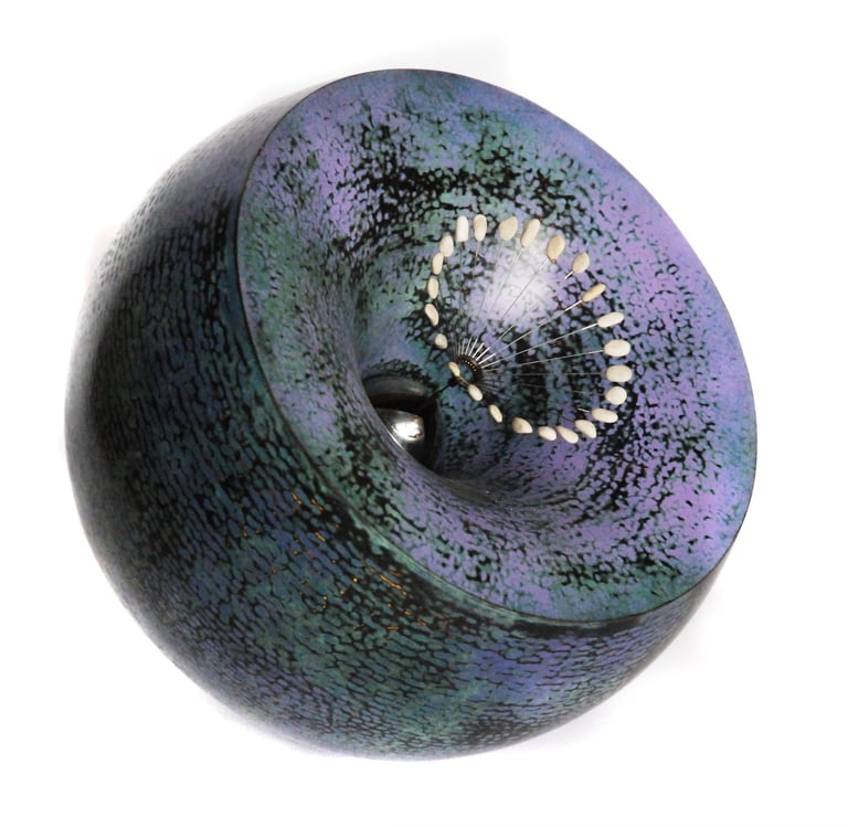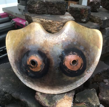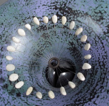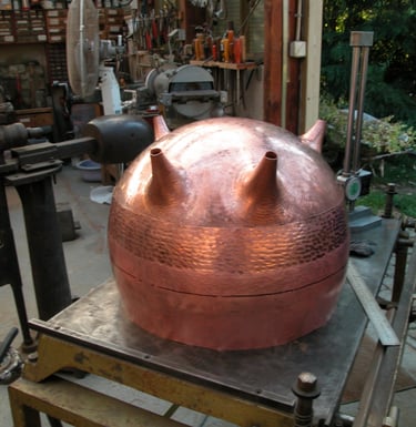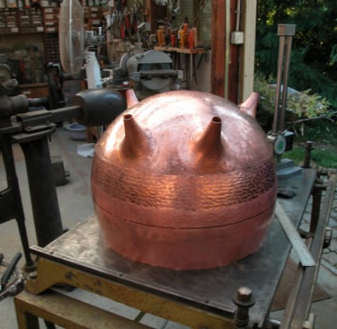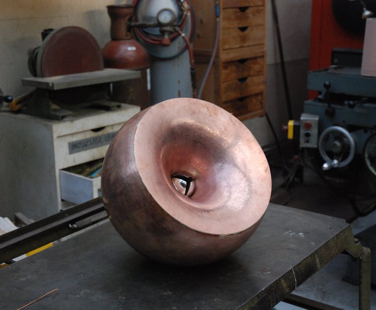 Bouche d'agnathe Cuivre mis en forme au marteau, patiné, 700 galets, hauteur 90cm, , 2006.