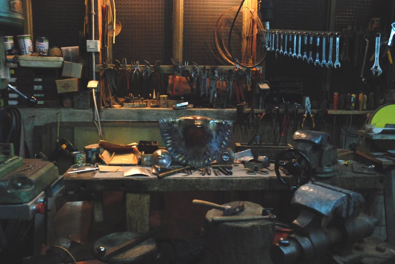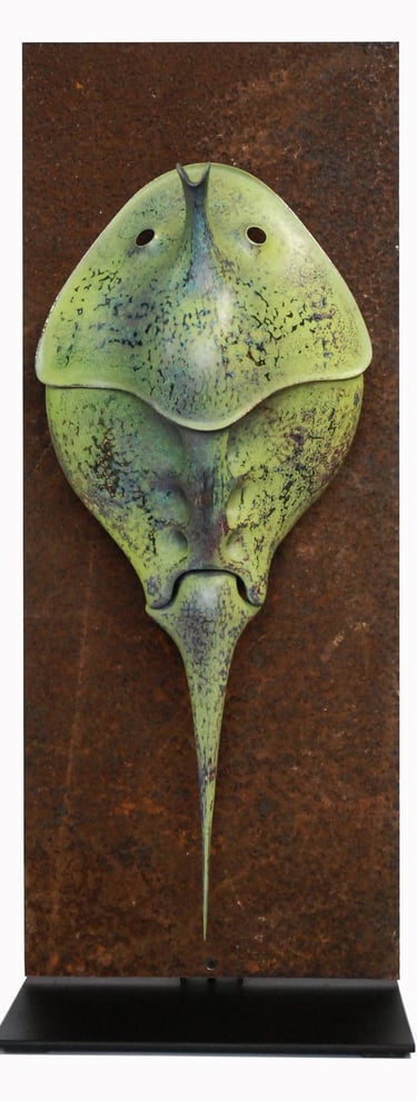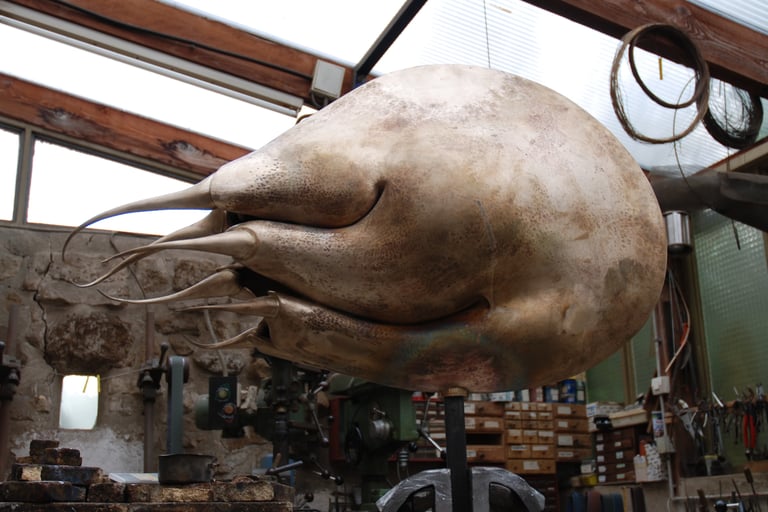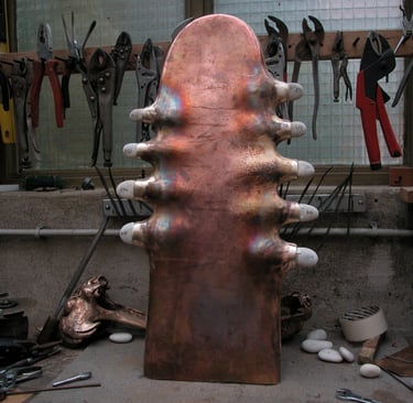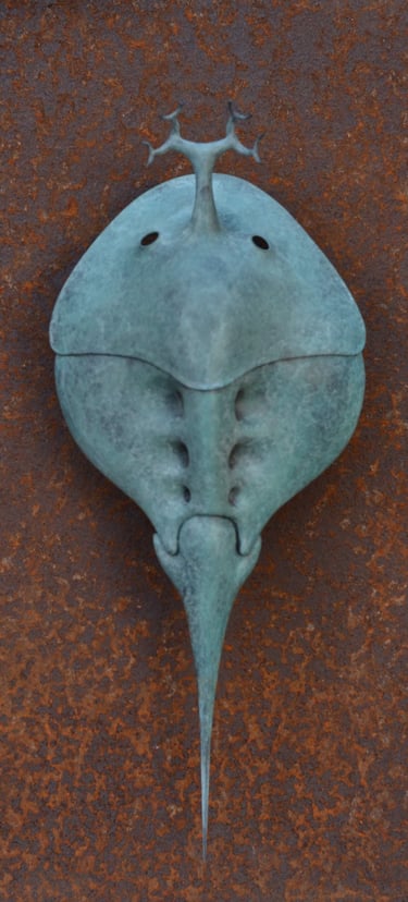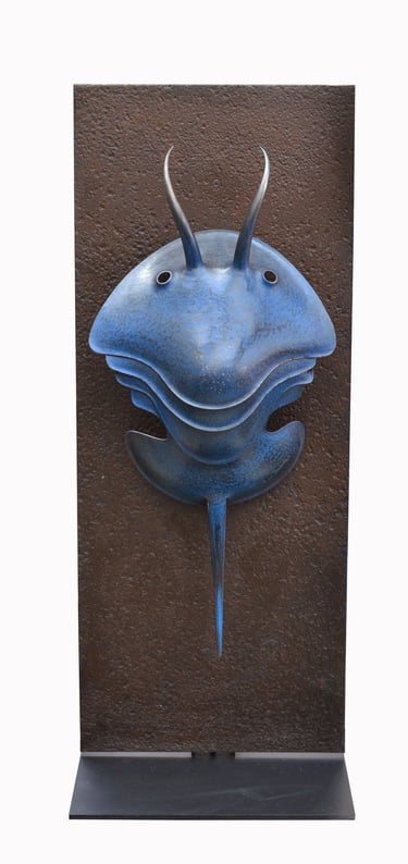 Limules Cuivre mis en forme au marteau, fond acier, hauteur 70cm. 2011-2022