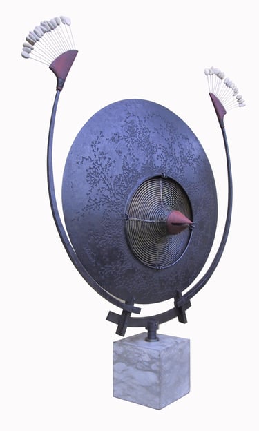 Schizoptère cuivre mis en forme, hauteur 70cm, 1998.