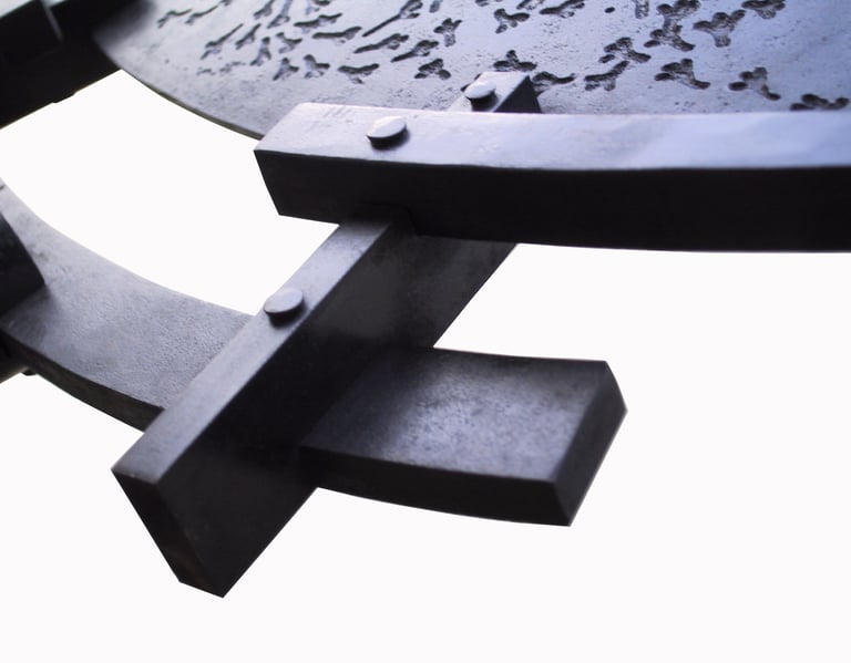 le Cri cuivre mis en forme, galets, acier, hauteur 70cm, 2001.